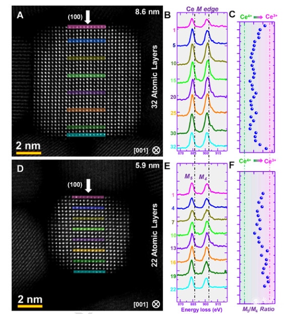 STEM-EELS逐层定量地研究了Cr掺杂CeO2纳米晶中各原子层的价态分布