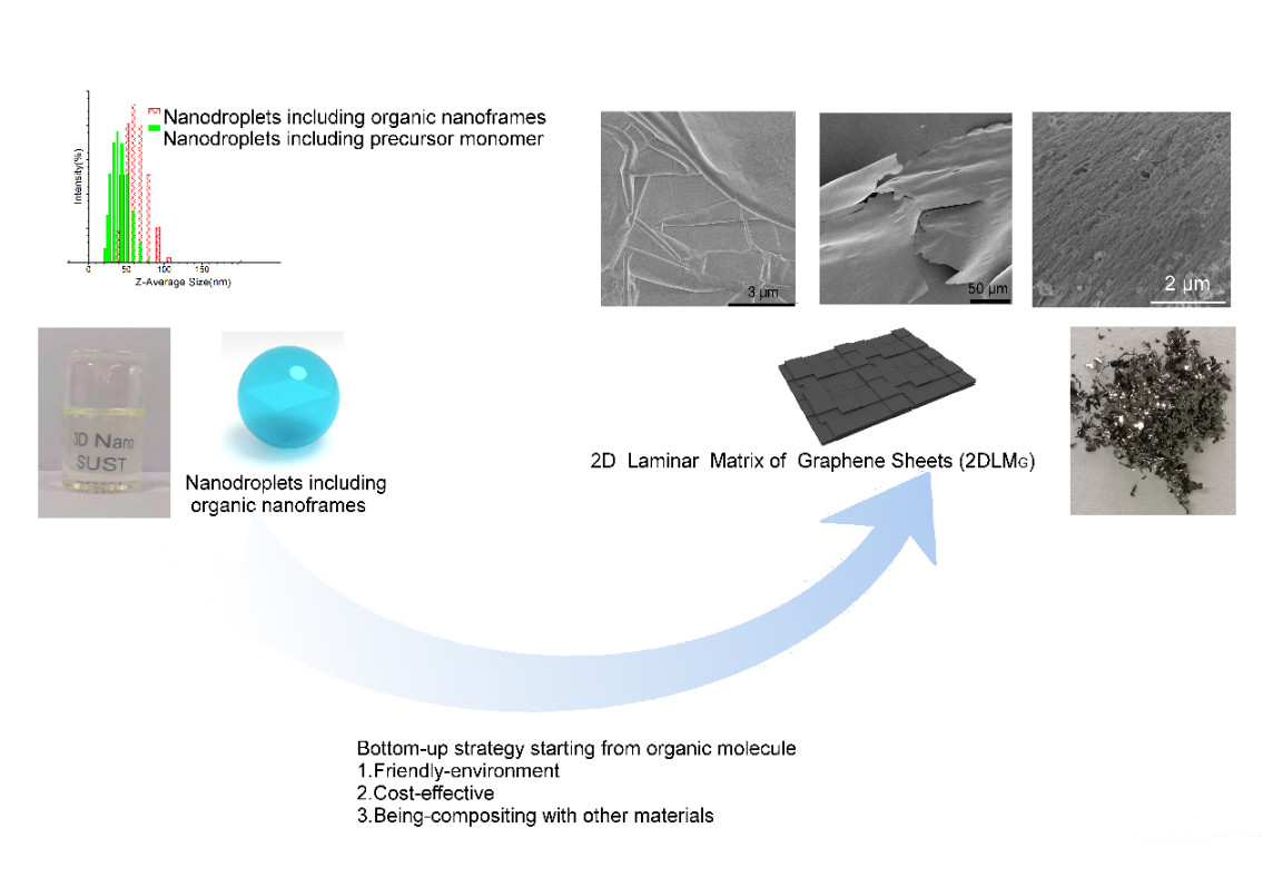 丁书凯副教授和杜高辉教授采用纳米液滴作为纳米反应器,原位光聚合二官能团单体获得纳米网状交联聚合物作为纳米石墨烯片前驱体。最终在煅烧氧化还原过程中,利用纳米网状交联聚合物形成二维层流石墨烯纳米片基体。该基体用于锂离子电池负极材料,在电流密度100mAg-1,500圈下,获得了565mAhg-1高比容量。并且展现出了与金属纳米颗粒复合优势。相关成果发表在期刊Carbon(IF=8.821)(https://doi.org/10.1016/j.carbon.2020.01.075)上。