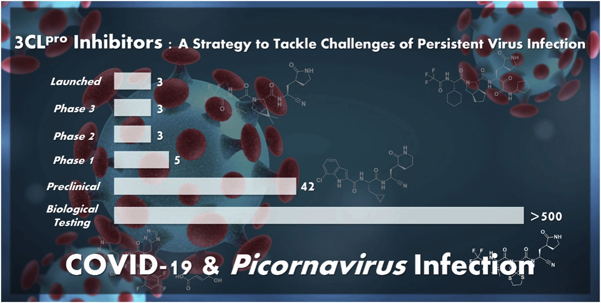 【成果一】冠状病毒3CL蛋白酶抑制剂开发:应对持续病毒感染挑战的策略。Development of de-novo coronavirus 3-chymotrypsin-like protease (3CLpro) inhibitors since COVID-19 outbreak: A strategy to tackle challenges of persistent virus infection.