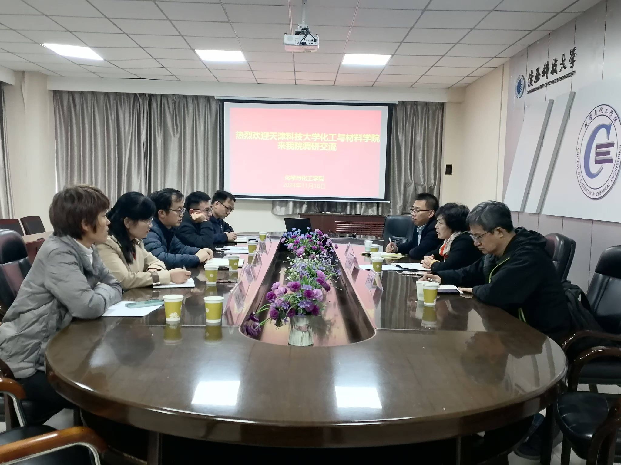 11月18日下午,天津科技大学化工与材料学院副院长郝庆兰、化工系副主任张晨曦、陆福泰老师一行到化学与化工学院调研交流,化学与化工学院副院长王伟涛,应用化学专业、化学专业、化学工程与工艺专业系主任及相关教师参加此次座谈。