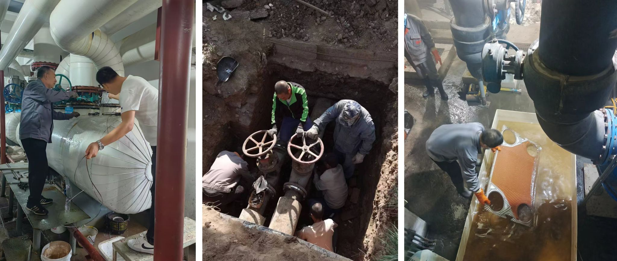 提早检修保养设备,确保基础设施运行稳定。自上一个采暖季结束,后勤集团动力中心认真总结上一季供暖经验,有计划、有步骤地对换热站、主管网及二次管网的供热设备及管道进行检修、保养,更换密封垫774条、更换故障阀门4个,确保供暖设备始终处于良好状态;对4个换热站换热器进行了专业清洗,提高换热效能。
