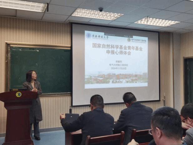 会上,电控学院副院长周强总结了2024年国家自然科学基金申报工作,分析了存在的问题,并对2025年申报工作和科研任务进行了动员与展望。在基金申报经验分享环节,2024年青年基金获批教师胡重阳结合自身经验,从选题策划、申请书撰写和评审要点等方面,详细讲解了科学问题凝练的方法与技术路线设计的关键,并分享了提升申请书逻辑性与说服力的实用技巧,与会教师受益匪浅。