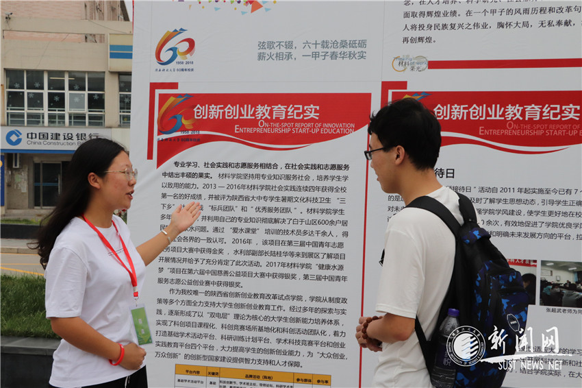 25日下午,校友们在沁园广场参观了以“感恩科大”为主题的材料学院科技创新成果展,校友们详细了解了学院近年来在“挑战杯”“互联网+”比赛等大学生科技创新以及志愿服务和社会实践等方面取得的丰硕成果,对学院科技创新取得的成绩表示由衷的赞叹,并提出了共享发展的建议和意见,部分校友还就科研成果转化、设立科技创新奖学金与相关老师进行了深入的沟通。