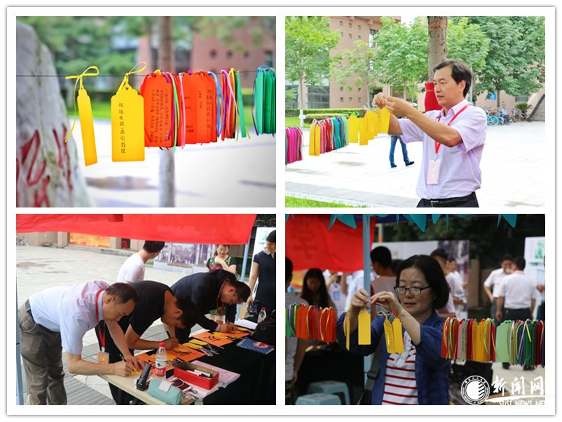 6月26日下午4点,轻工学院楼下挂满了飘着丝带的祝福卡。饮其流者怀其源,学其成时念吾师。校友们在祝福卡上写满了对母校、对学院、对恩师的祝福话语。“祝福轻工学院为中国造纸业培养更多优秀人才!”“祝福母校‘双一流’建设取得佳绩”“祝母校下个甲子再创辉煌”……一张张卡片随着色彩绚丽的风车在风中摇荡,仿佛是学子们对母校的无声告白。