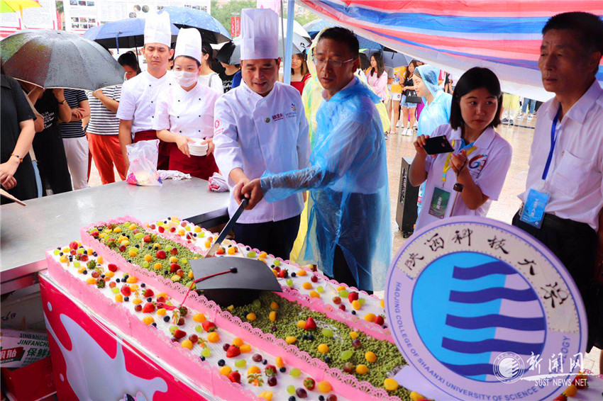 为庆贺学校60华诞,26日当天,馨园餐厅烹制了一块1米宽,12米长的水果蛋糕,在学校沁园广场分享给与全校师生及校友,一起分享节日的快乐。