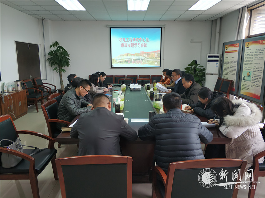 12月7日上午,pg电子官网机电工程学院在校廉政教育基地召开廉政专题中心组(扩大)学习会议,集中学习《中国共产党纪律处分条例》(以下简称《条例》)。学院全体班子成员、党委委员、教工党支部书记、党政办公室主任和组织员参加了本次学习,会议由学院党委书记夏祥林主持。