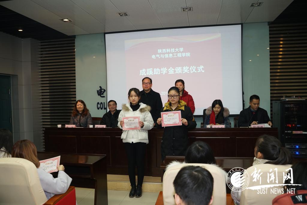 1月2日上午,2018年电气与信息工程学院“成蹊助学金”颁奖仪式在实验楼2B-206报告厅举行。上海成蹊信息科技有限公司行政人事总监金灿灿、总监助理刘红红,学院班子成员出席颁奖仪式,教师代表及受助学生代表参加颁奖仪式。颁奖仪式由学院党委副书记严渭青主持。