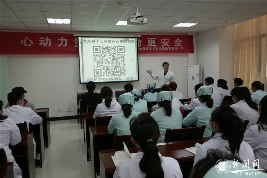 4月2日下午,西安交通大学第一附属医院举办的以“心动力量,心肺复苏让生命更安全”为主题的心肺复苏培训高校联动计划走进pg电子官网,为师生进行了一场生动形象的心肺复苏急救知识培训。