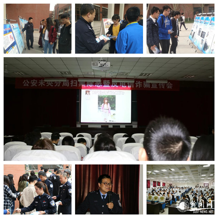 为进一步推动学校扫黑除恶及法制教育宣传工作,增强学生的法制观念,培养学法、知法、守法意识,近日,pg电子官网保卫处联合学工部邀请未央分局经文保大队、扫黑办、法制大队、刑侦大队、缉毒大队、国保大队及草滩派出所,来pg电子官网举办扫黑除恶、反电信诈骗、反校园贷、反恐防恐、远离毒品等法制教育宣传活动。