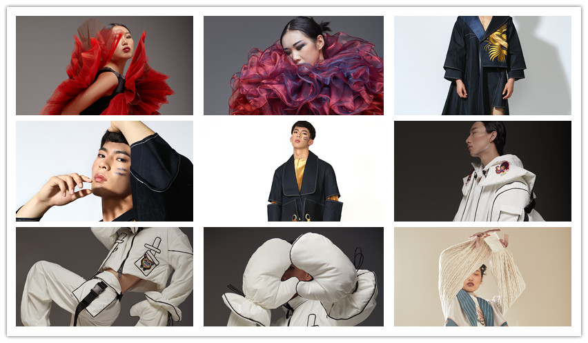 本次发布会的设计作品共23个系列,110余套作品。作品《柒》灵感来源于陕西刺绣纹样凤凰,主要是传达出陕西刺绣的美好寓意,有吉祥、吉利、尊贵、博大,相传鱼的记忆只有七秒钟,七秒之后便会重新拥有幸福的记忆,此系列服装也是想传达一种新旧的变化;《秦华簌月》灵感来自于陕西刺绣满月系列纹样,选取寅虎与酉鸡作为主要的刺绣图案,寓意健康、强壮、勇敢、吉祥。白与黑干净分明的色彩透露着纯洁,美好的寓意。《漠》本系列作品通过将陕西刺绣的图案和技法与服装设计中的创意面料及廓形设计相结合。融合手工刺绣,使面料工艺与陕西刺绣的匠人精神相结合,将“传统与现代” “传承与创新”完美呼应,研发一系列的创意服装,达到“陕西刺绣,一带一路”的主题思想。