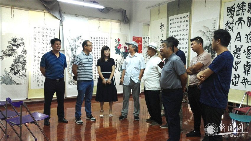 '"丹青歌盛世,翰墨颂和谐。7月1日上午,欣逢中国共产党成立98周年,离退休工作处、咸阳校区社区联合举办的“‘中华人民共和国成立七十周年’书画摄影展”开幕。